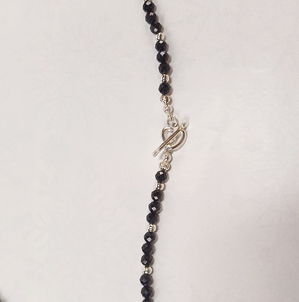 Die harmonische Kombination von Amethyst, Onyx, Spinell, lila Achat, Bergkristall und Silber